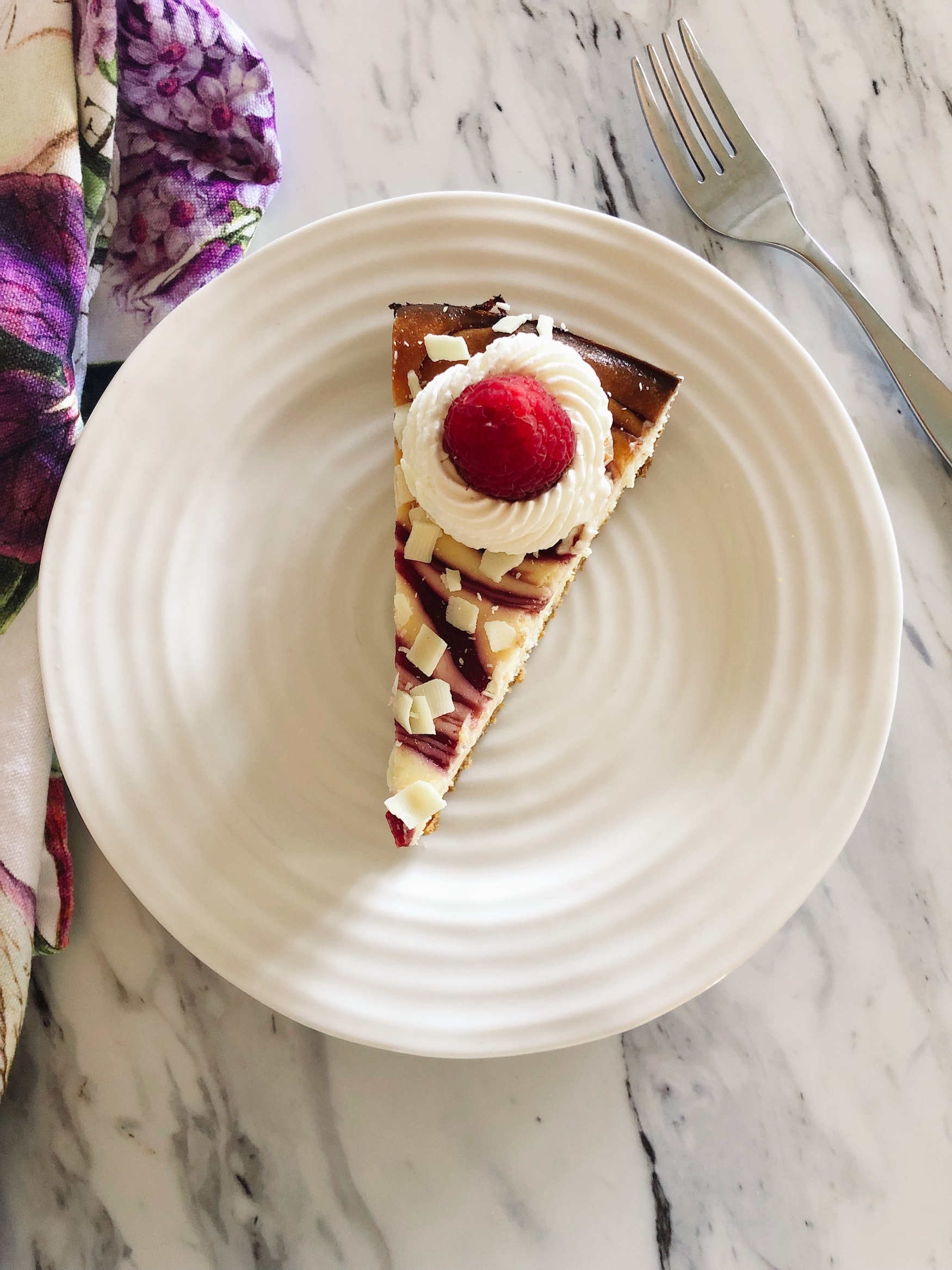 White Chocolate Cheesecake with Raspberry Swirl